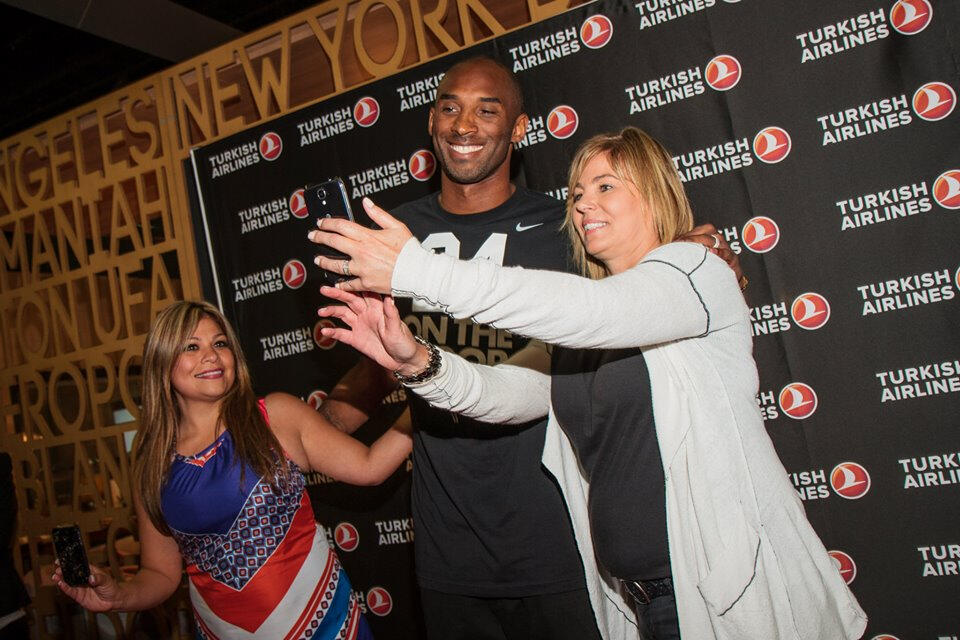 İş seyahat dünyasından 7000’in üzerinde üyesiyle 6 kıtada hizmet veren Global İş Seyahat Kuruluşu (GBTA) tarafından Amerika’nın Los Angeles şehrinde düzenlenen fuarda, NBA yıldızı Kobe Bryant THY standını ziyaret ederek çekilişle belirlenen katılımcılarla ‘selfie’ fotoğraf çektirdi.