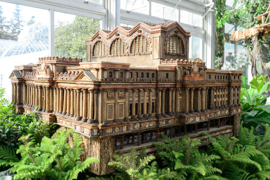 New York Botanik Bahçesi’nde bu yıl 22’ncisi açılan sergi, ziyaretçi akınına uğruyor. Bahçe içinde yaklaşık 560 metrekarelik alana kurulan sergide; ağaç gövdesi, tohumu, kabuğu, yaprakları ve dalları ile kozalaktan yapılmış onlarca binadan oluşan New York kentinin minyatürü yer alıyor.